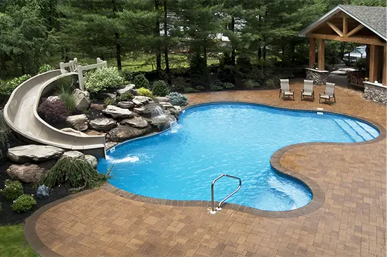Vinyl Pools are generally more economical to build than gunite pools. Vinyl pools are prefabricated steel structures that are lined with an interior vinyl cover. They are available in dozens of pre-designed shapes. You may be pleasantly surprised to learn how many shapes and sizes are available, in both rectangular and freeform designs! Vinyl liners come in a beautiful array of colors and patterns with lots of options to consider.